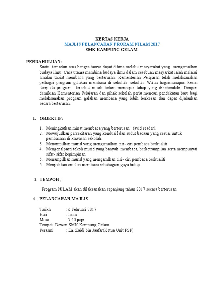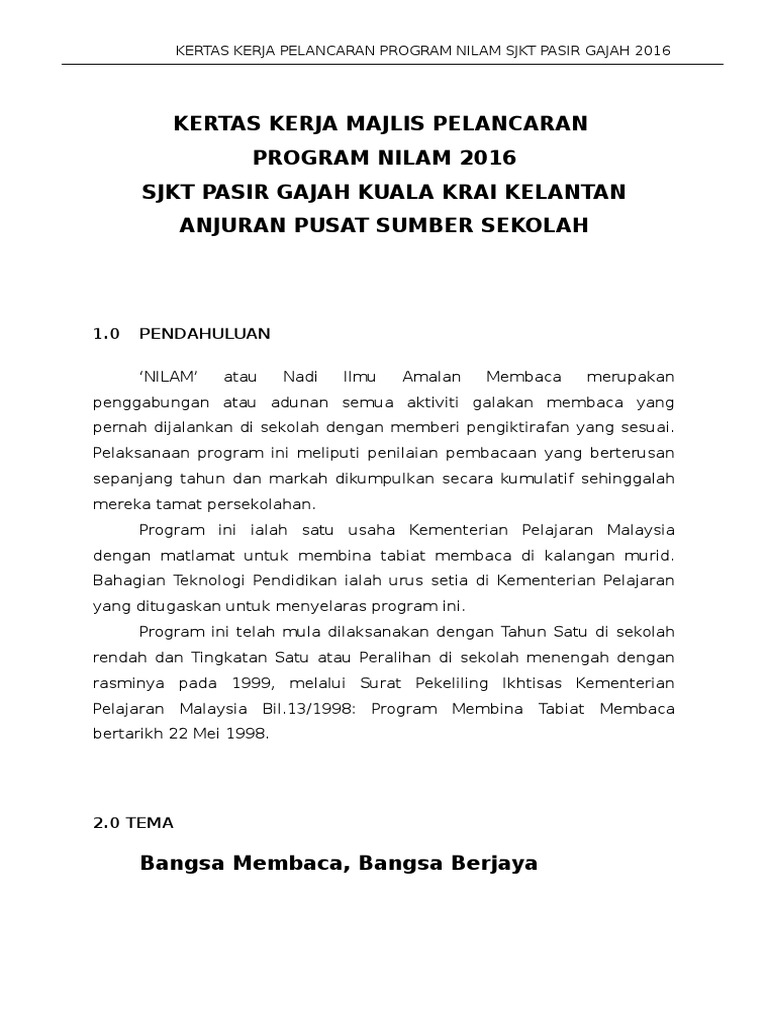 Kertas Kerja Majlis Pelancaran Program Nilam 2016 Pdf