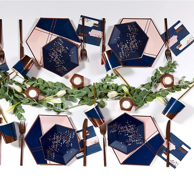 Navy Blue Pink Rose Gold Foil Party Disposable Tableware Lattice Paper Plate Cups Napkins For Wedding Birthday Baptism Decor Disposable Party Tableware Aliexpress